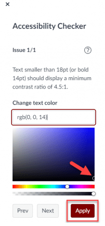 Text that is too small, too light, or of a color that does not contrast well with its background may be difficult to read for users with visual impairments. The Accessibility Checker can detect these problems and give you a chance to correct them
