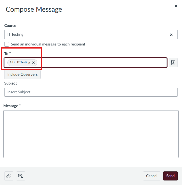 Under "To*" you can "Select All" to send the message to everyone in that course.