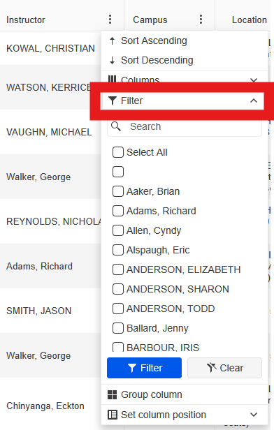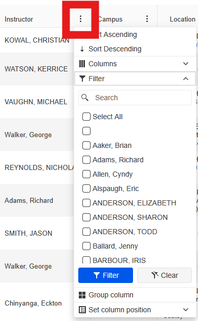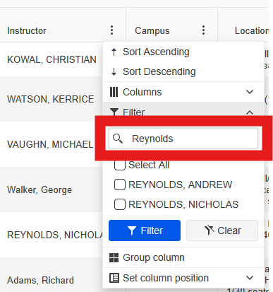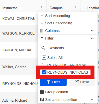 Once the screen reloads, you will see all of the classes for your selected Instructor and the selected Term.