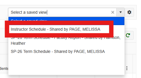 Select Instructor Schedule - Shared by PAGE, MELISSA