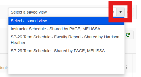 In the top right corner of the new screen, select the Drop Down icon next to "Select a Saved View"
